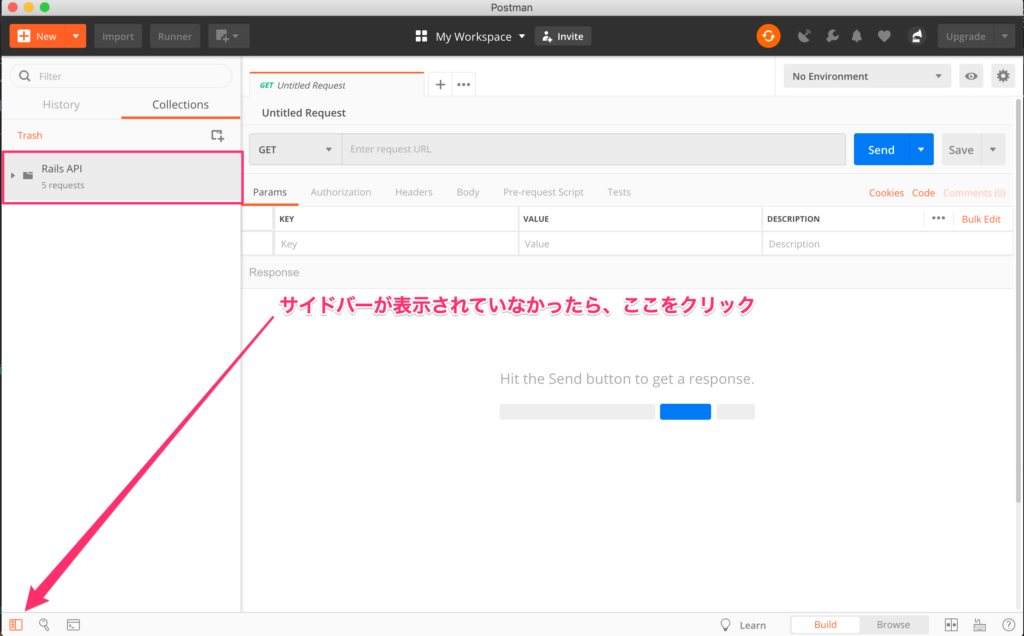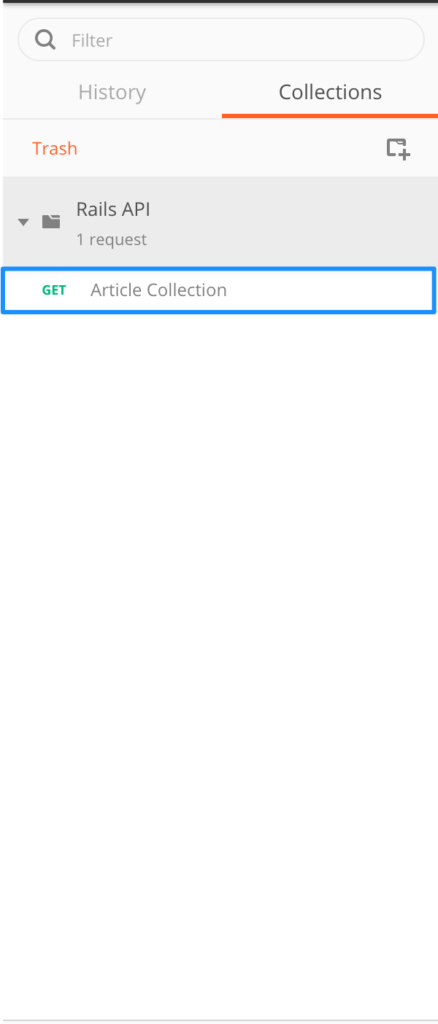 保存に成功すると、サイドバーのcollectionタブに、先程作成したディレクトリ名でリクエストとレスポンスの内容が保存されているのが確認できます。
